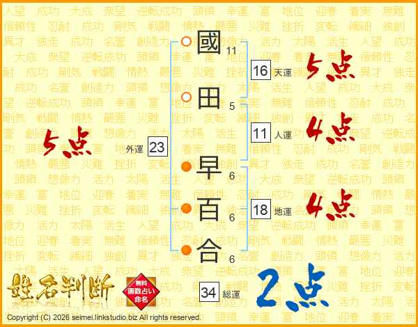 國田早百合さんの外運は23画の5点!