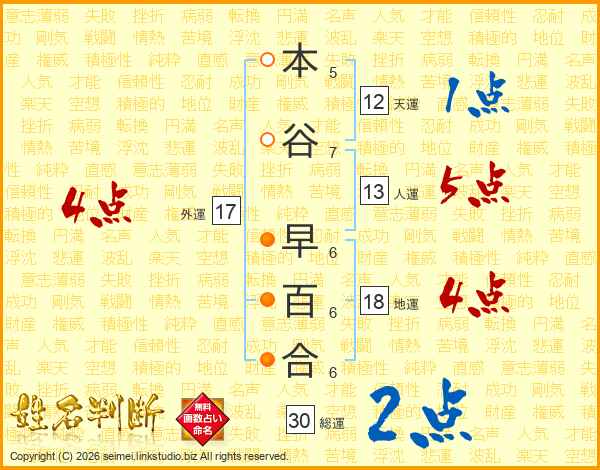 本谷早百合さんの総運は30画の2点!
