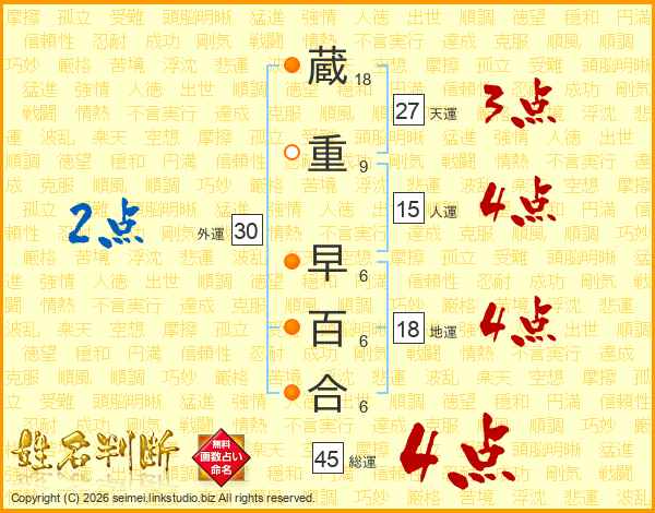 蔵(18画)重(9画) 早(6画)百(6画)合(6画)