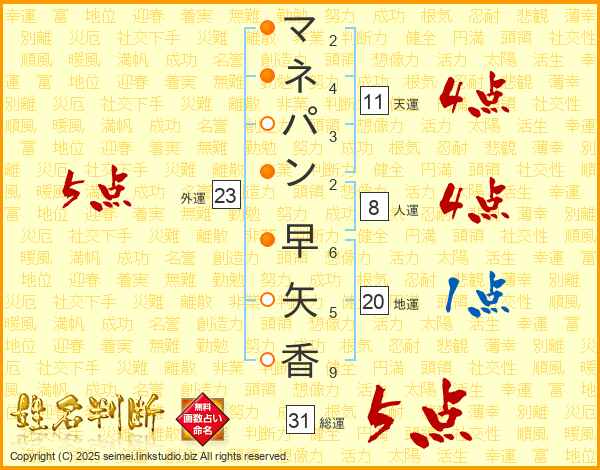 マネパン早矢香さんの総運は31画の5点!