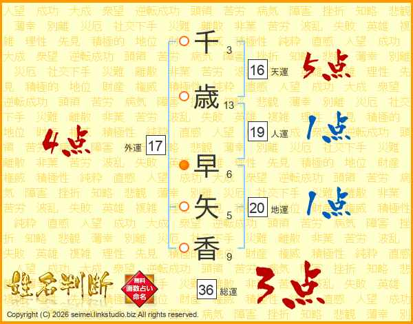 千歳早矢香さんの総運は36画の3点!