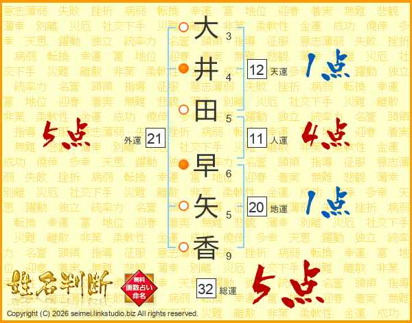大井田早矢香さんの総運は32画の5点!