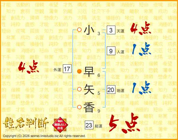 小早矢香さんの総運は23画の5点!