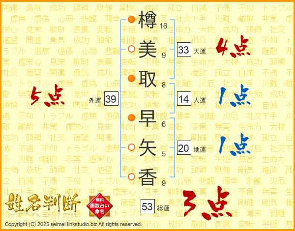 樽美取早矢香さんの総運は53画の3点!
