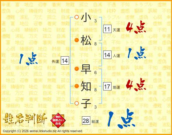 小松早知子さんの外運は14画の1点!