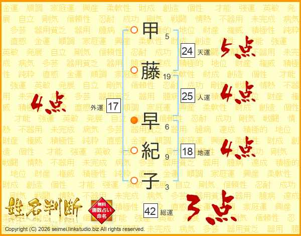 甲藤早紀子さんの外運は17画の4点!