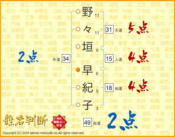 野々垣早紀子さんの総運は49画の2点!
