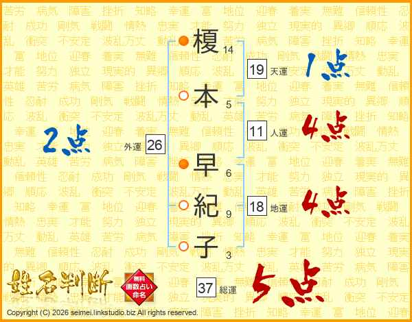 榎本早紀子さんの総運は37画の5点!