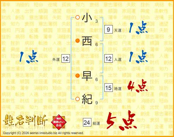 小西早紀さんの総運は24画の5点!
