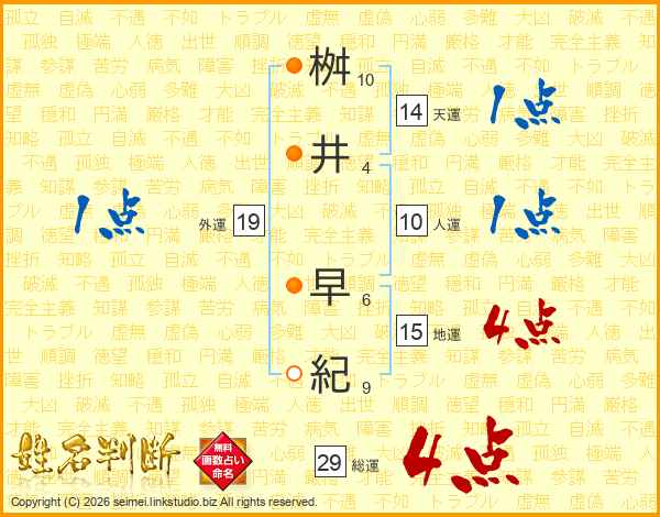 桝井早紀さんの総運は29画の4点!