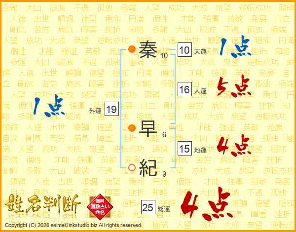 秦早紀さんの総運は25画の4点!