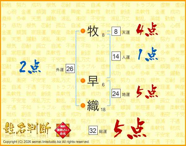 牧早織さんの総運は32画の5点!