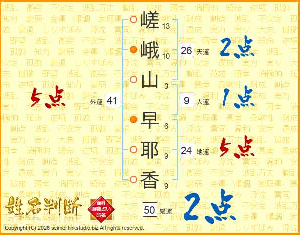 嵯峨山早耶香さんの総運は50画の2点!