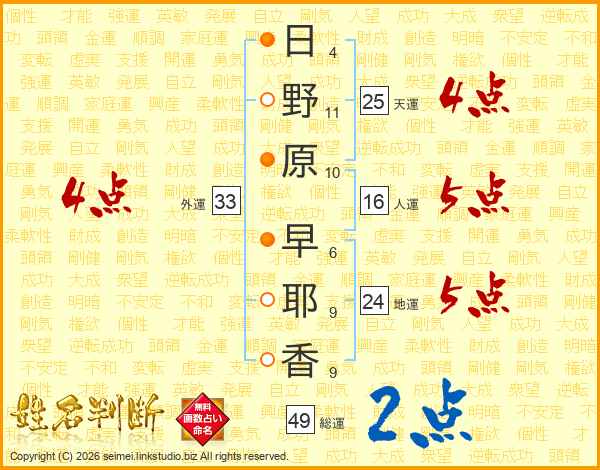 日野原早耶香さんの外運は33画の4点!
