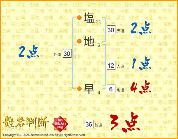 塩(24画)地(6画) 早(6画)