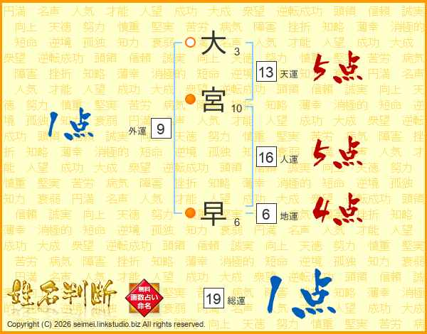 大宮早さんの総運は19画の1点