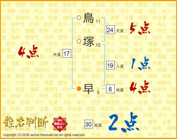 鳥塚早さんの総運は30画の2点!