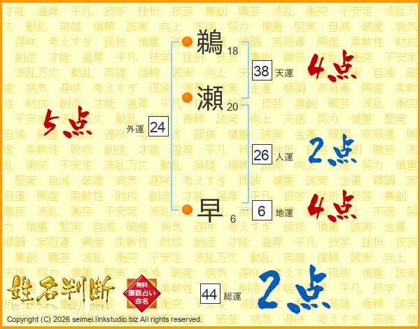鵜瀬早さんの天運は38画の4点!