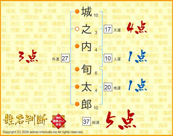 城之内旬太郎さんの総運は37画の5点!