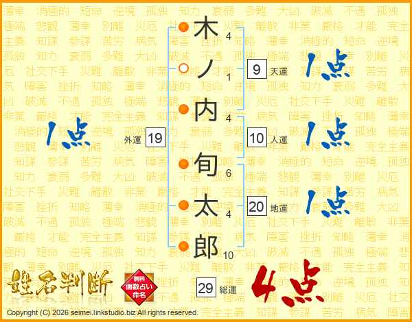木ノ内旬太郎さんの総運は29画の4点!