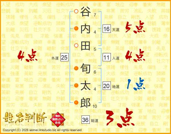 谷内田旬太郎さんの総運は36画の3点!