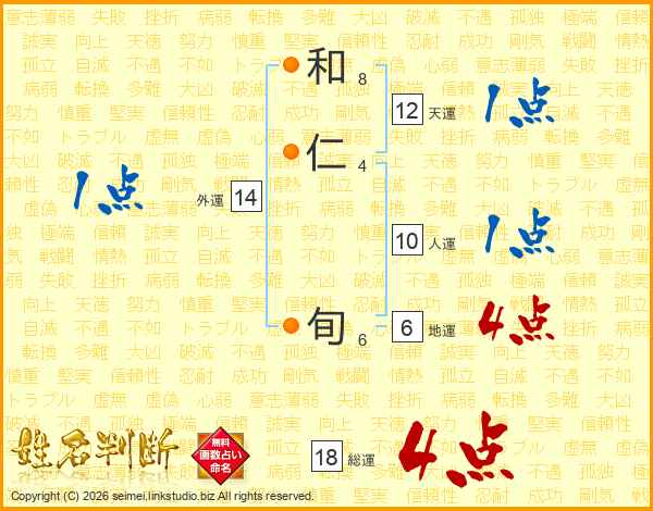 和仁旬さんの総運は18画の4点!
