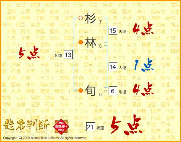 杉林旬さんの総運は21画の5点!