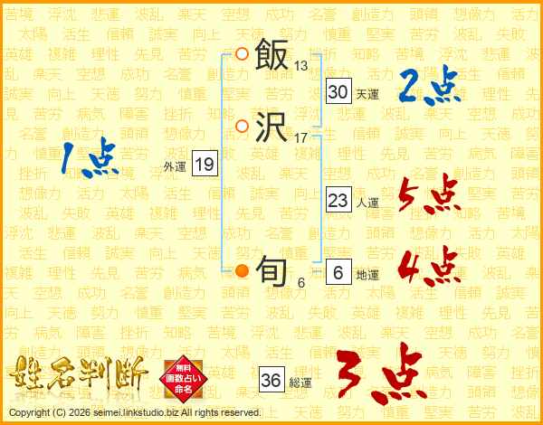 飯沢旬さんの総運は36画の3点!
