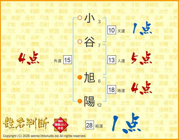 小谷旭陽さんの総運は28画の1点!