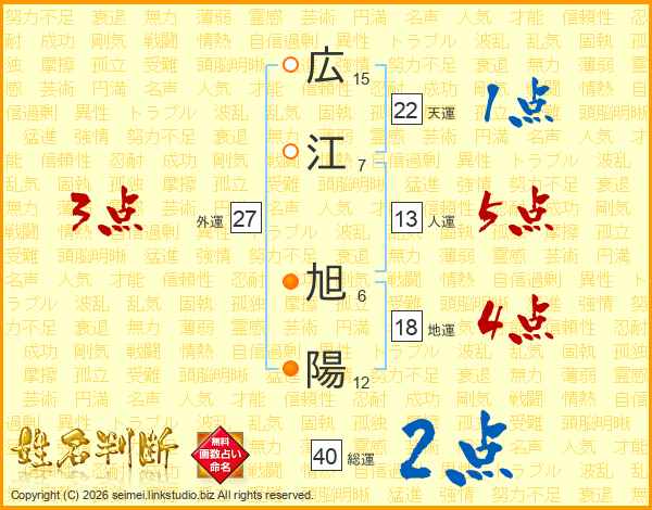 広江旭陽さんの総運は40画の2点!