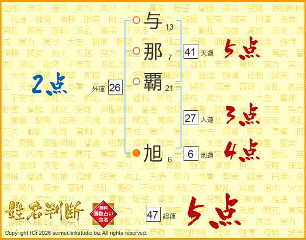 与那覇旭さんの総運は47画の5点!