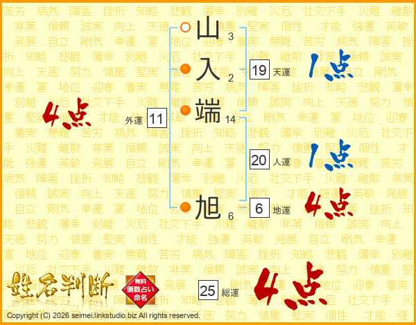 山入端旭さんの総運は25画の4点!