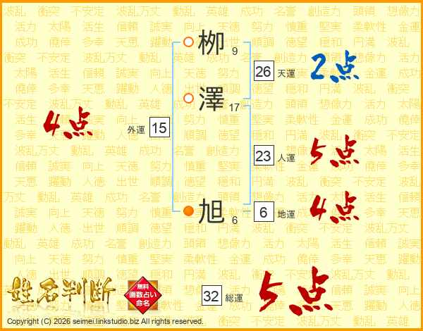 栁澤旭さんの天運は26画の2点!