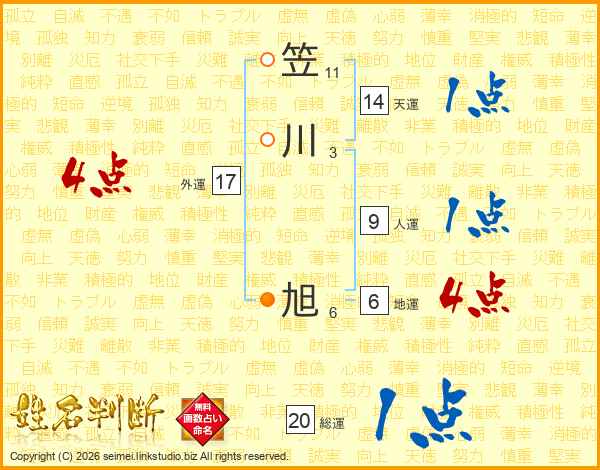 笠川旭さんの天運は14画の1点!