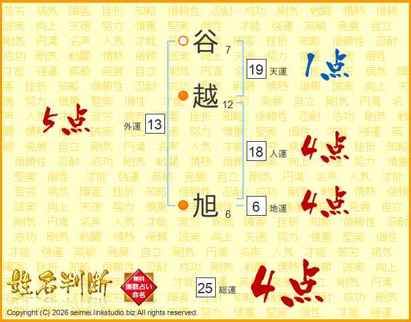 谷越旭さんの外運は13画の5点!