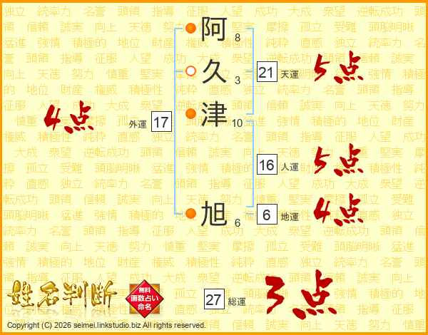 阿久津旭さんの天運は21画の5点!