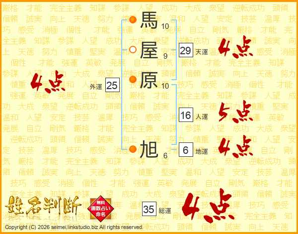 馬屋原旭さんの総運は35画の4点!