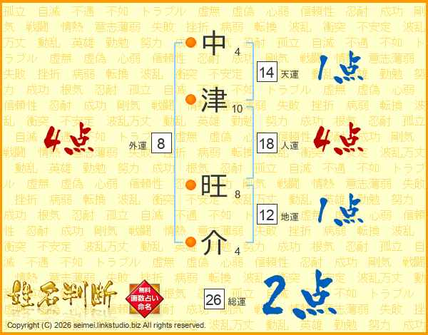 中津旺介さんの天運は14画の1点!