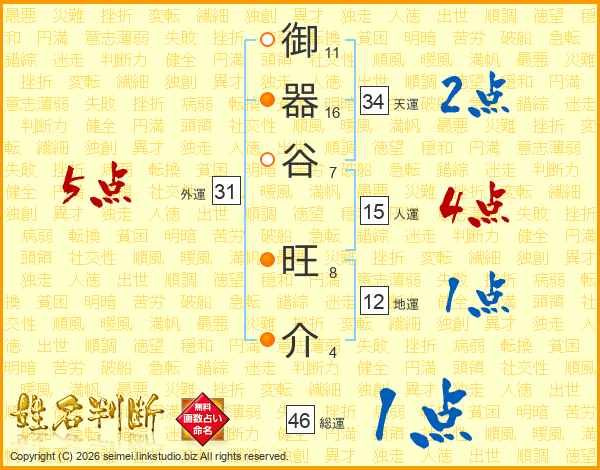 御器谷旺介さんの総運は46画の1点!
