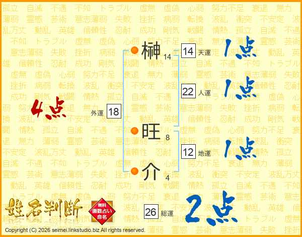 榊(14画) 旺(8画)介(4画)