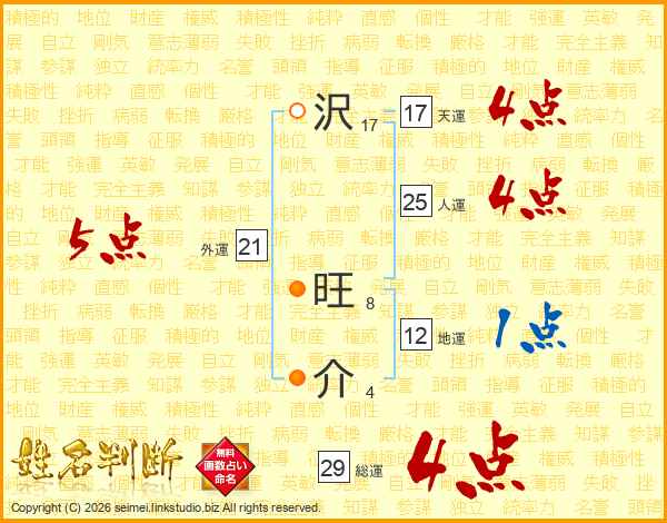 沢(17画) 旺(8画)介(4画)