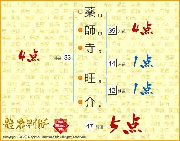 薬師寺旺介さんの総運は47画の5点!