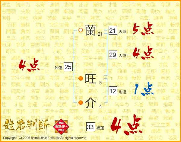 蘭旺介さんの総運は33画の4点!
