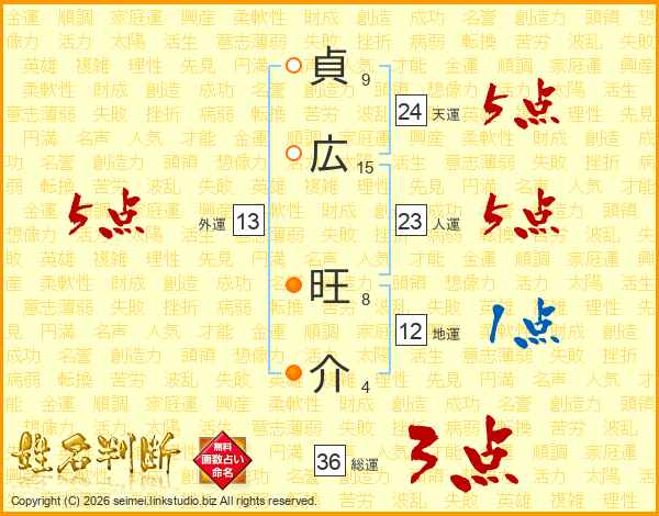 貞(9画)広(15画) 旺(8画)介(4画)
