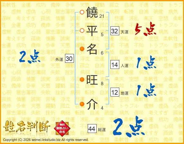 饒(21画)平(5画)名(6画) 旺(8画)介(4画)