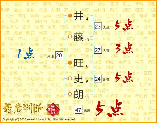 井藤旺史朗さんの総運は47画の5点!
