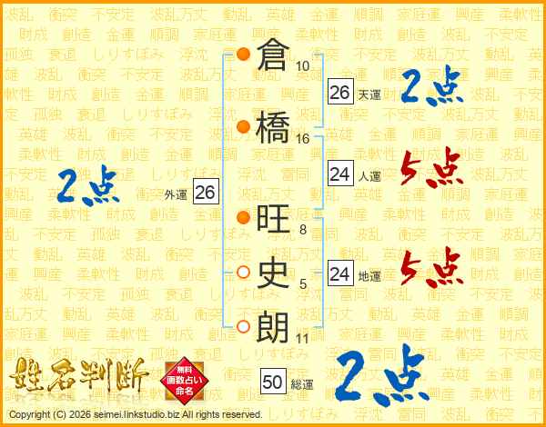 倉橋旺史朗さんの天運は26画の2点!