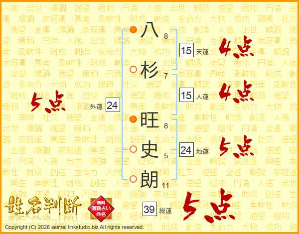 八杉旺史朗さんの総運は39画の5点!
