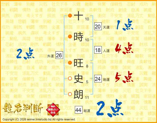 十(10画)時(10画) 旺(8画)史(5画)朗(11画)