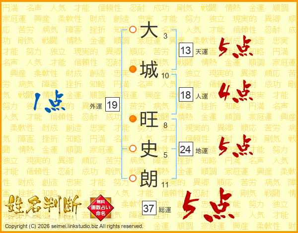 大(3画)城(10画) 旺(8画)史(5画)朗(11画)